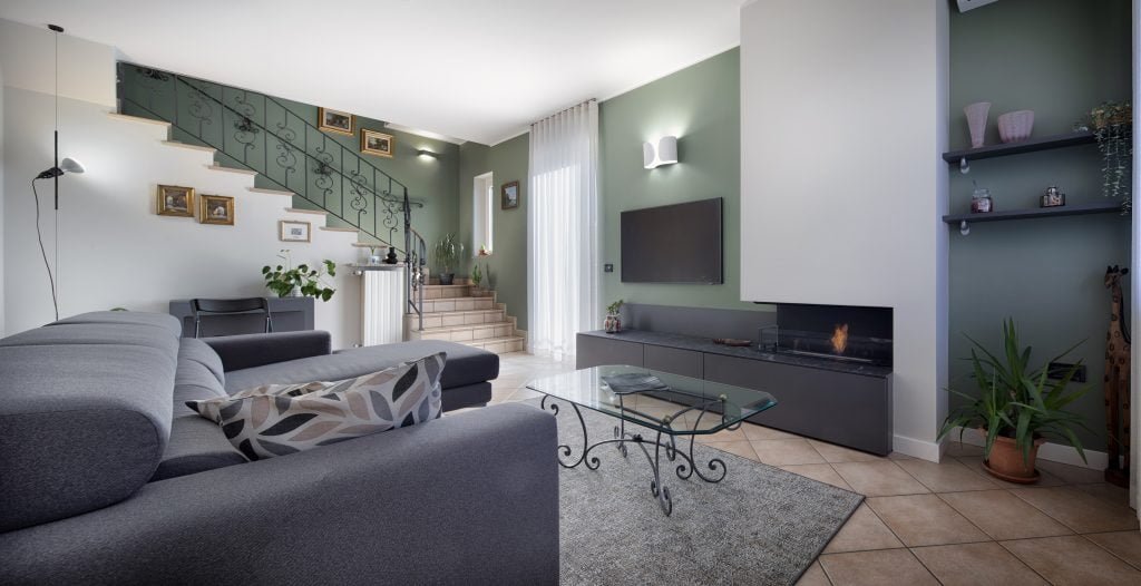 Un soggiorno classico che aveva necessità di essere “svecchiato”, con un camino a legna in muratura da convertire in camino moderno, a bioetanolo. Il tutto mantenendo i pavimenti esistenti, la scala e la credenza in legno. L’intervento ha coinvolto in particolare le finiture delle pareti, l’arredo ed i corpi illuminanti, con il ridisegno totale della […]